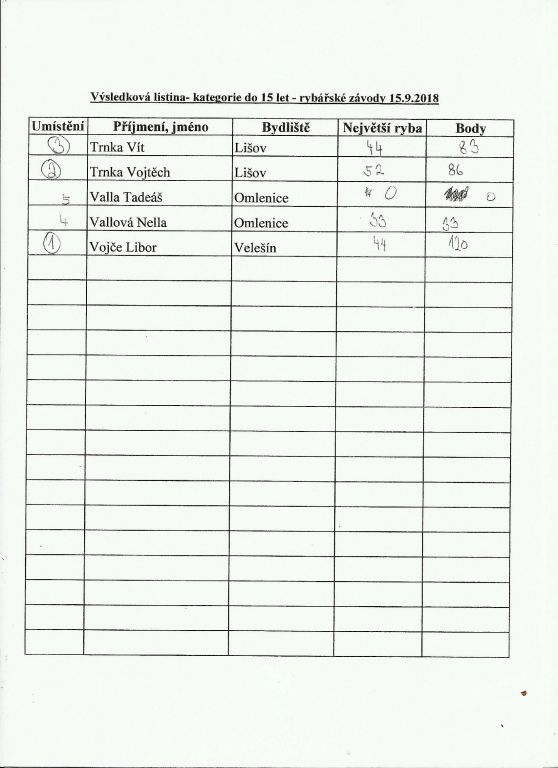 Rybářské závody 15.9.2018